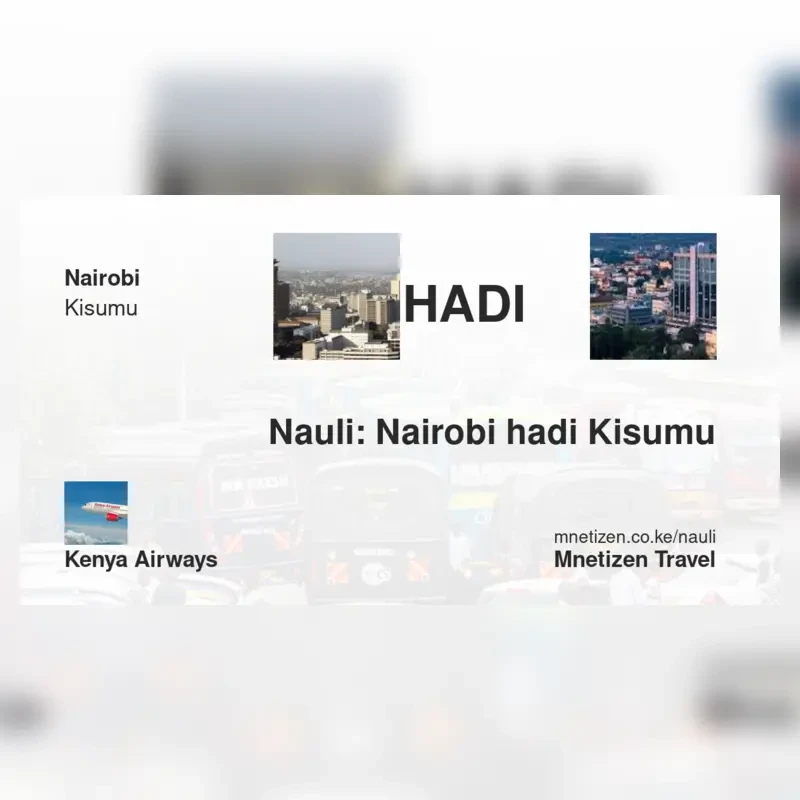 The fare from Nairobi to Kisumu with Kenya Airways is . Prices may vary during holidays and school terms.