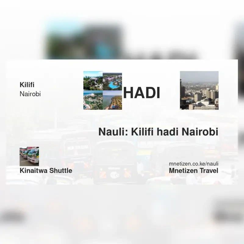 Kilifi to Nairobi Fare & Online Booking | Kinaitwa Shuttle