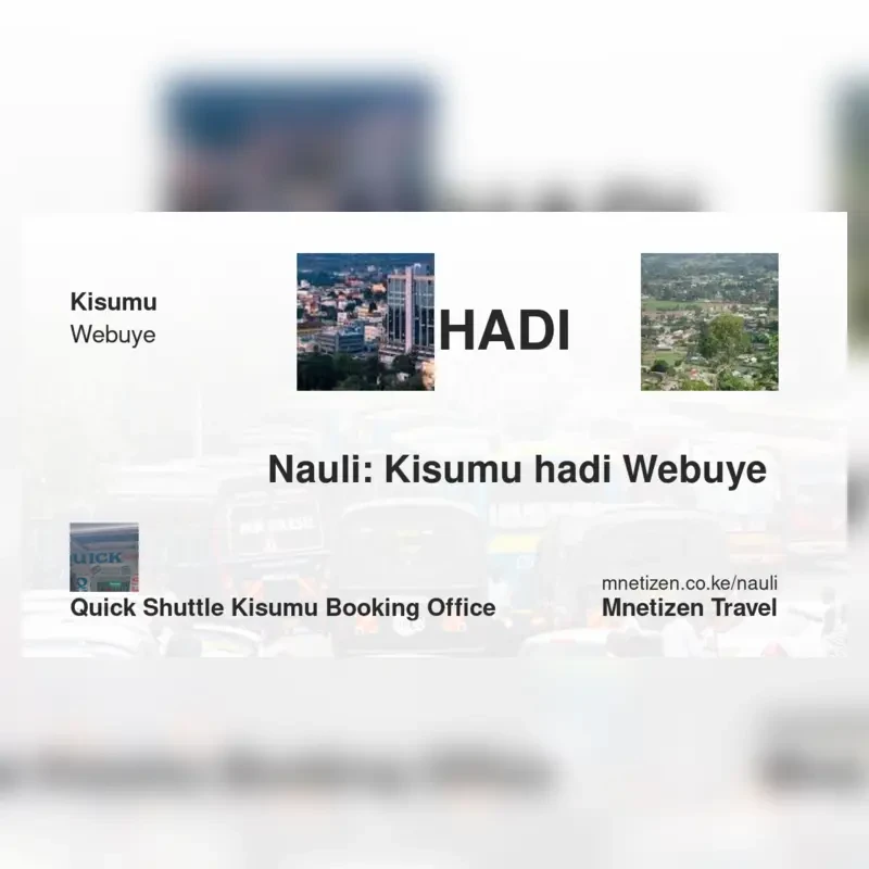 Quick shuttle Kisumu Booking office offers flexible departure times. Call 0746934915 for pickup and booking details.