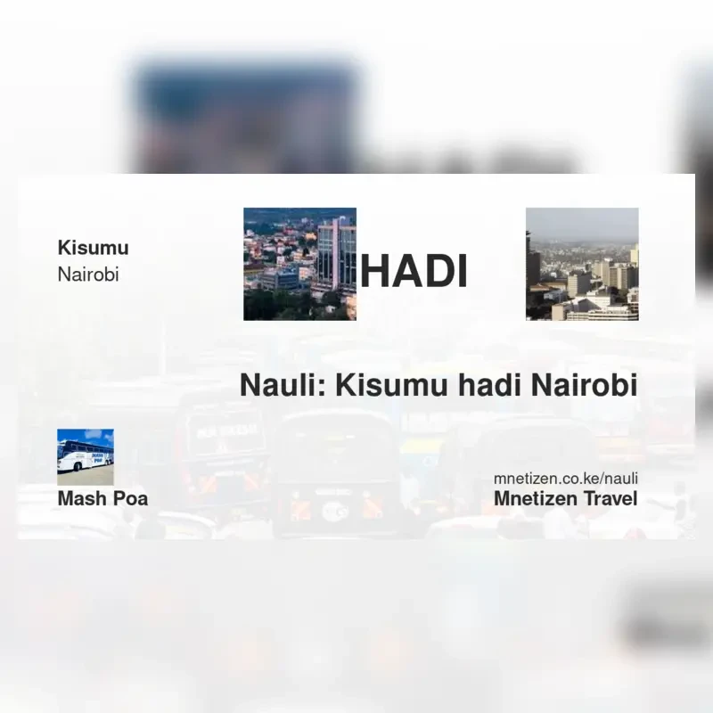 Kisumu to Nairobi Fare & Online Booking | Mash Poa