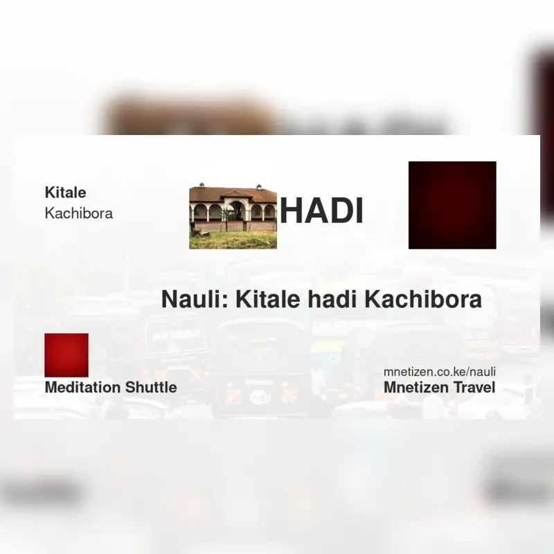 | Kitale Malaba | Meditation shuttle Shuttle | – | – | ksh 600 Book |