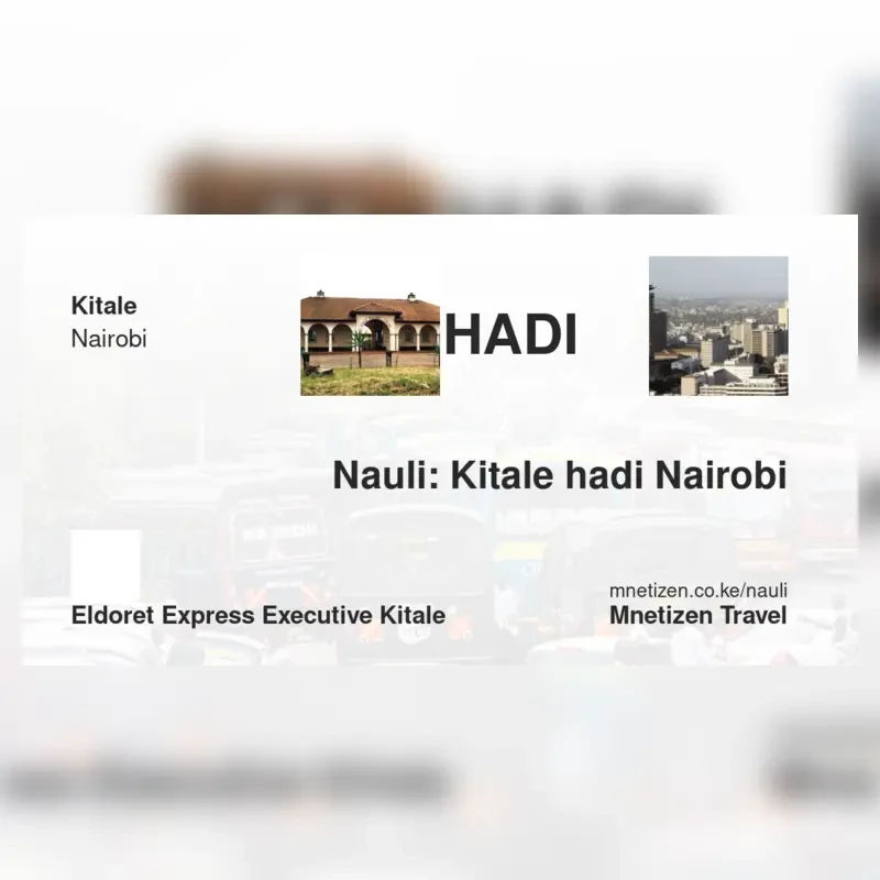 | Kitale Nairobi | Nnus shuttle kitale Shuttle | 385 | 8hours |