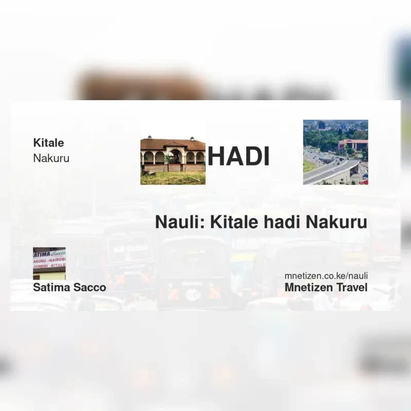Kitale to Nakuru Fare & Online Booking | Satima Sacco
