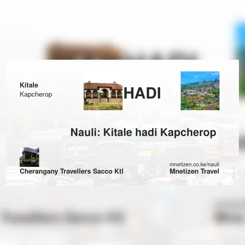 Cherangany Travellers SACCO ktl is a top choice for this route. Alternatives include: Cherangany Travellers SACCO ktl, Meditation shuttle . We also recommend Cherangany Travellers SACCO ktl.