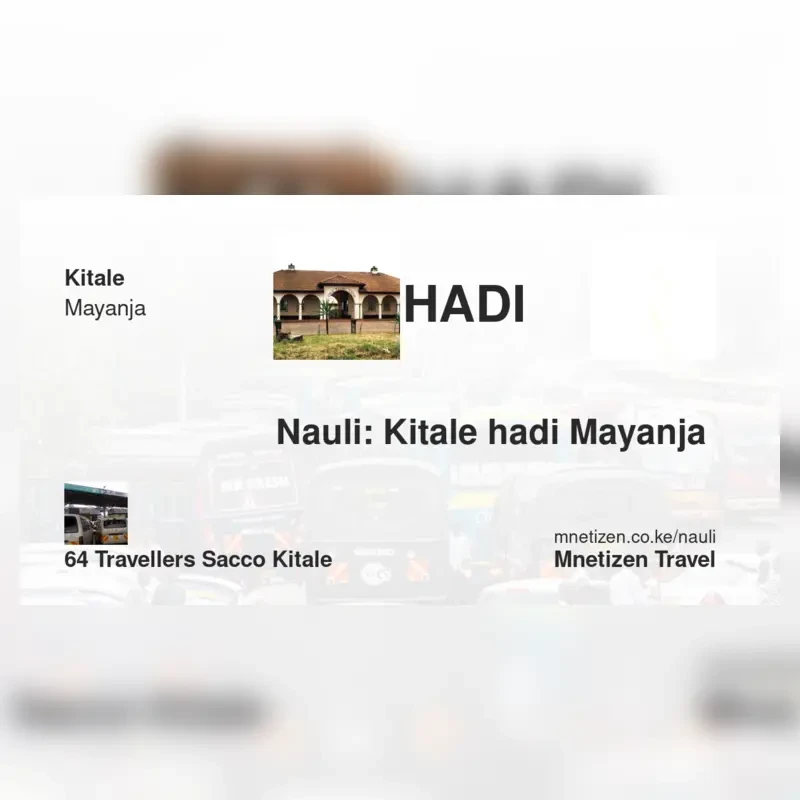 Kitale to Mayanja Fare & Online Booking | 64 Travellers Sacco Kitale