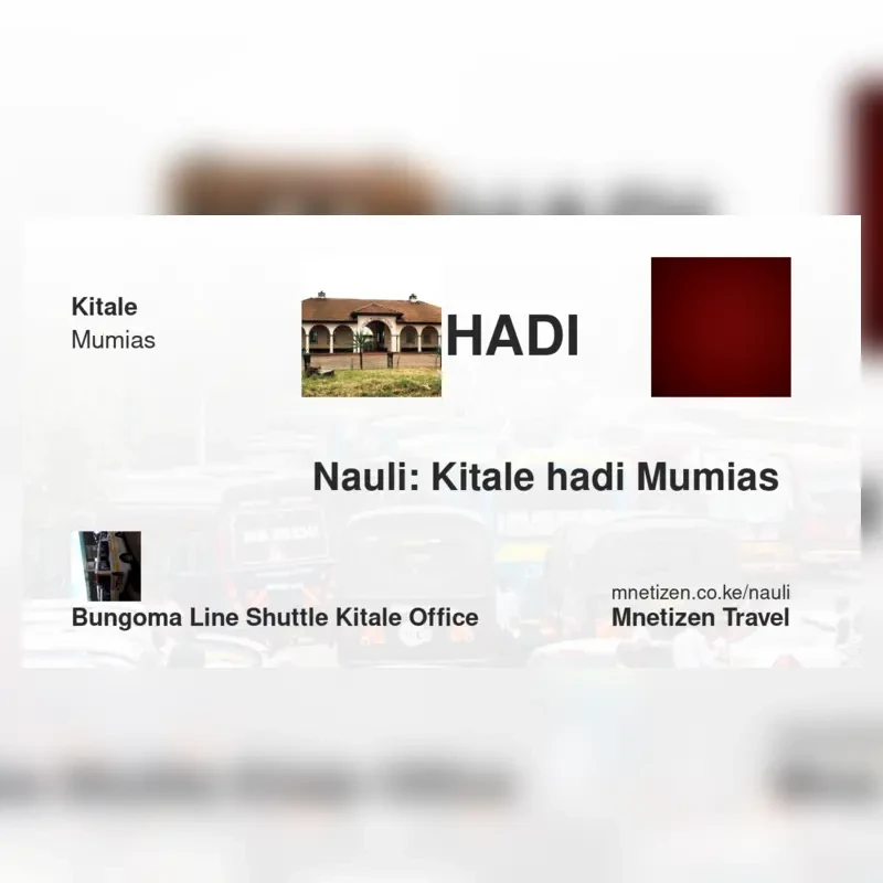 | Kitale Mumias | Nyaugenya kitale Shuttle | – | – | ksh 600 Book |