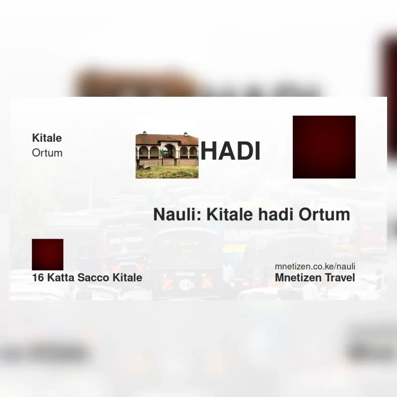 | Kitale Makutano | 16 katta sacco kitale Shuttle | – | – | ksh 200 Book |
