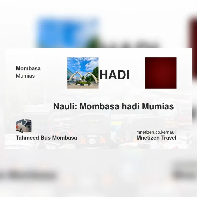 Mombasa to Mumias Fare & Online Booking | Tahmeed Bus Mombasa