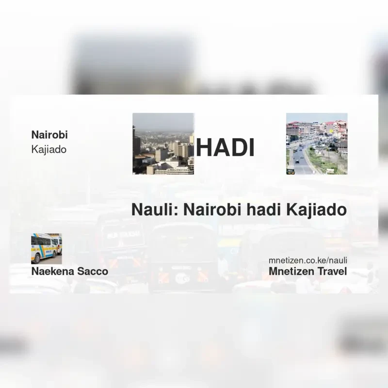 The fare from Nairobi to Kajiado with Naekena Sacco is . Prices may vary during holidays and school terms.