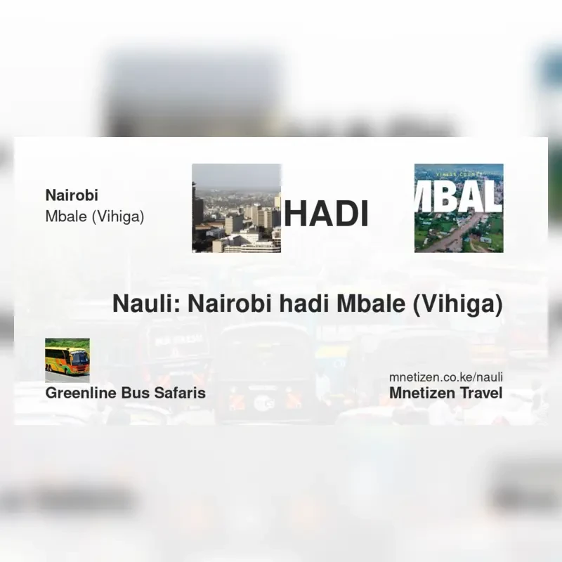 The fare from Nairobi to Mbale (Vihiga) with Greenline Bus Safaris is . Prices may vary during holidays and school terms.