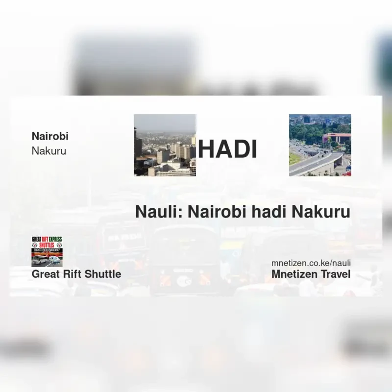 Nairobi to Nakuru Fare & Online Booking | Great Rift Shuttle