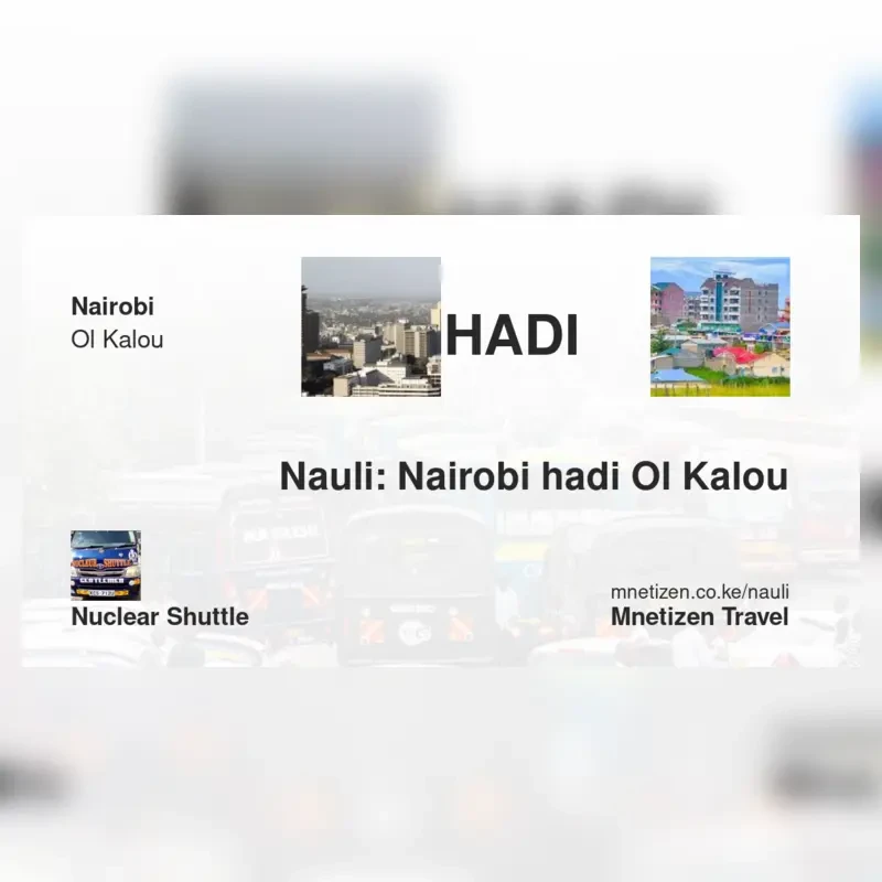 Frequently Asked Questions: Travel from Nairobi to Ol Kalou - Nuclear Shuttle