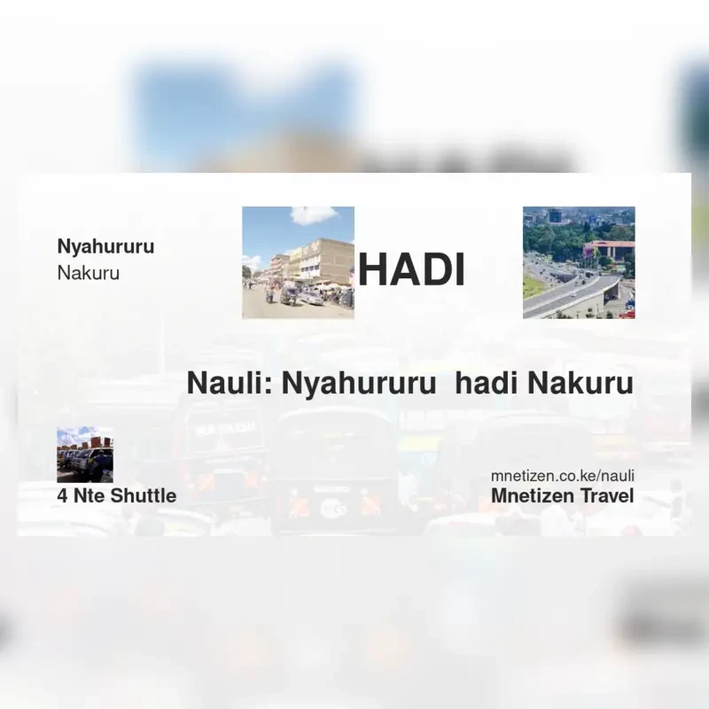 Nyahururu to Nakuru Shuttle fare, Online Shuttle booking Nyahururu -Nakuru, 4 Nte Shuttle ticket Nyahururu -Nakuru, Compare Shuttle fares Nyahururu -Nakuru, Book Shuttle online Nyahururu -Nakuru, Schedule Shuttle Nyahururu -Nakuru, Cheap Shuttle tickets Kenya